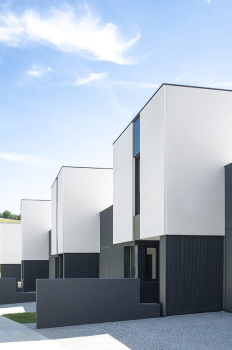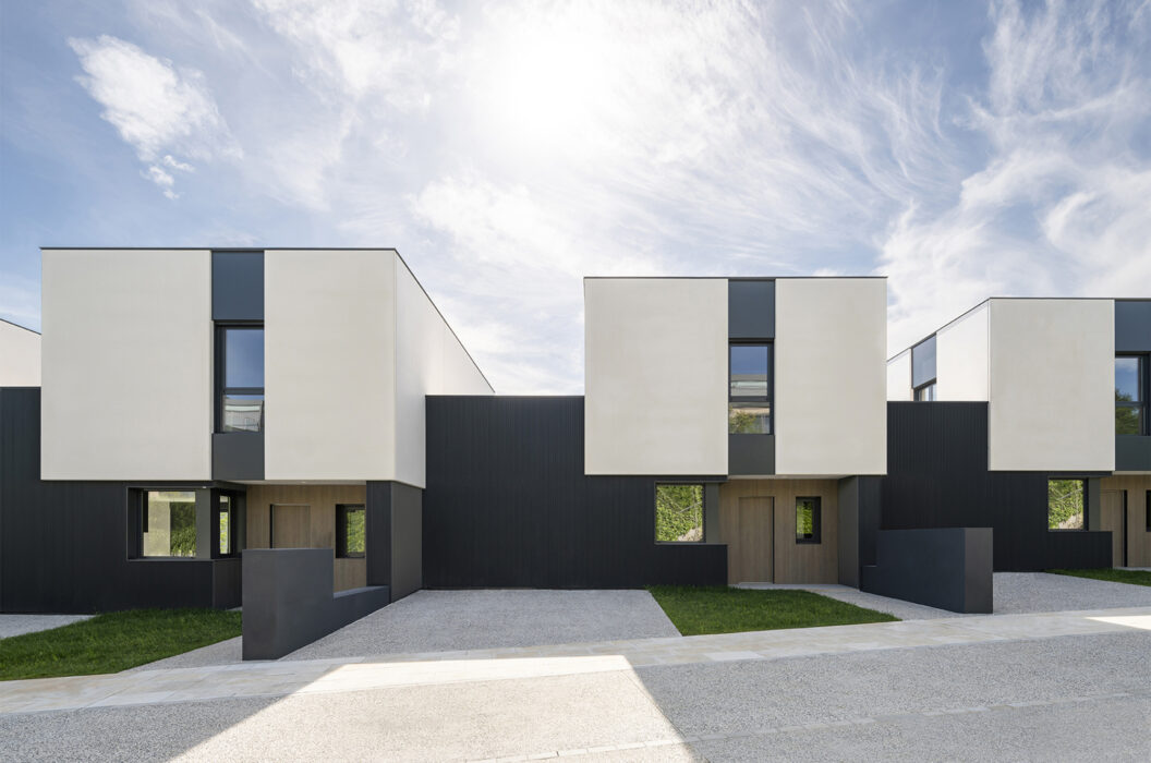 Para conseguir la mejor implantación de cada vivienda, de forma que quede separada mínimamente del terreno pero que a su vez su relación con el espacio exterior de la parcela sea directa y cómoda, cada vivienda se implanta a su correspondiente cota, creando unos escalonamientos tanto en altura como en planta que dotan al conjunto de cada unidad funcional de riqueza volumétrica, e individualidad y privacidad en las propias viviendas.