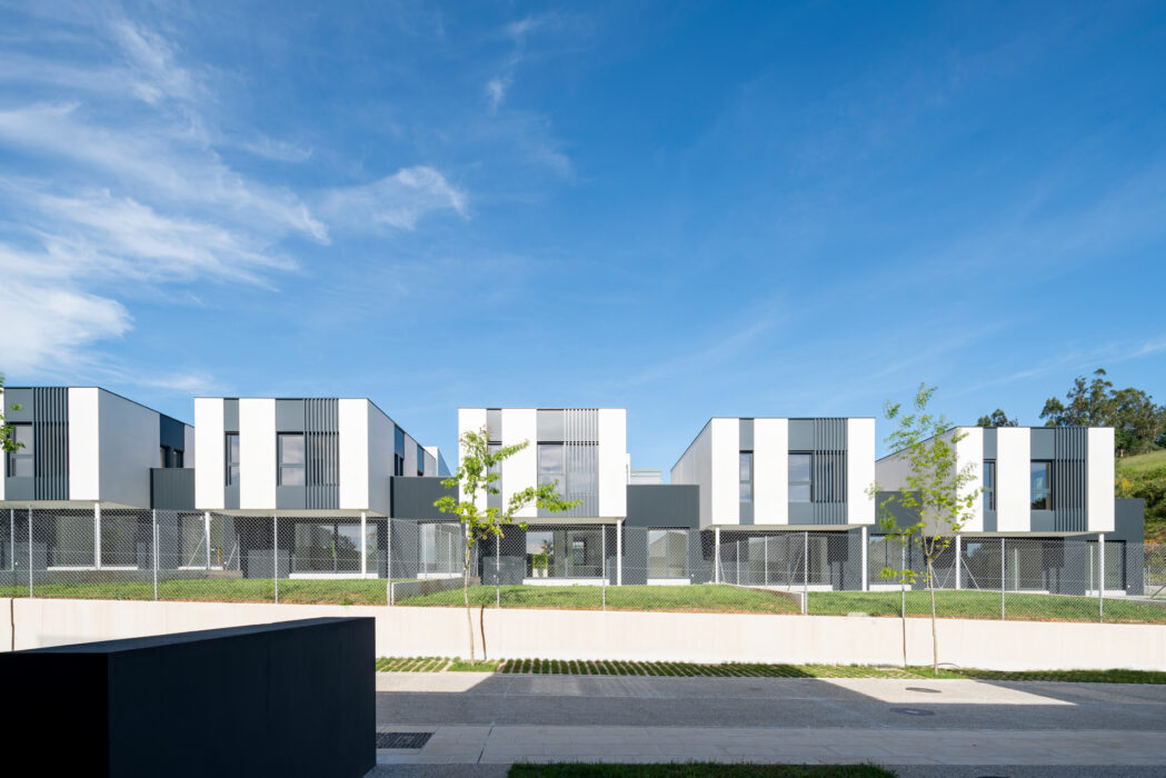 En fase 2, por el contrario, al tener unos condicionantes de orientación y topografía diferentes, las viviendas se sitúan lo más al norte posible, alejándolas de la rúa do peregrino, con el objetivo de crear hacia dicha vía su jardín de estancia principal, con orientación sur, y reducir la superficie de jardín norte donde el soleamiento es nulo. Debido a la topografía, las viviendas de fase 2 se implantan de manera diferente a las de fase 1, accediendo a ellas por la planta superior, y dejando en planta baja los dormitorios abriendo al jardín norte.